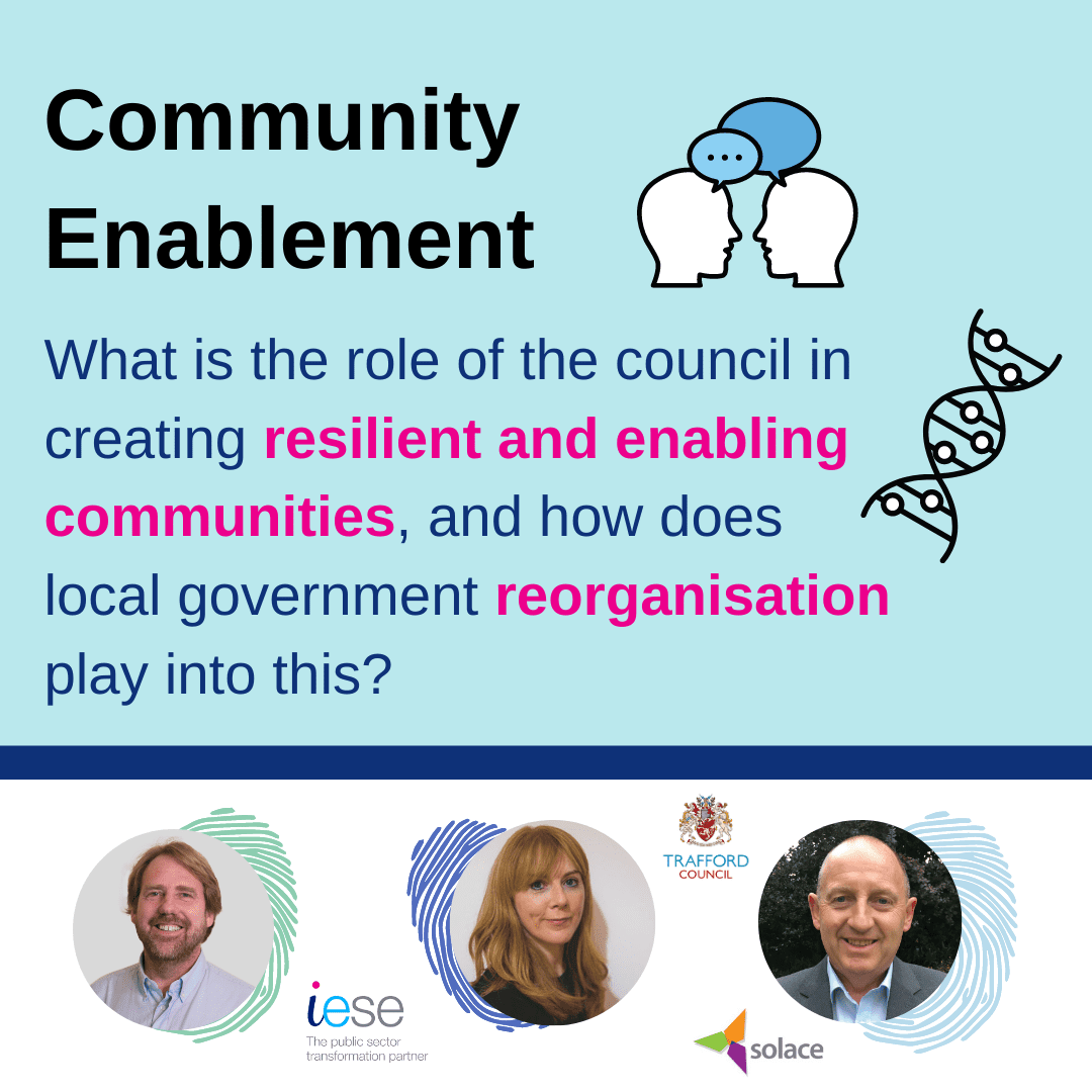 More and more local authorities are striving to adopt a community enabling approach and to allow and encourage residents to self-serve. We need to be creating resilient communities whereby the council isn’t the answer to a problem, but the community is able to create its own solution itself. In this session we will discover the pathways to community-enablement including considering the role of local government reorganisation.